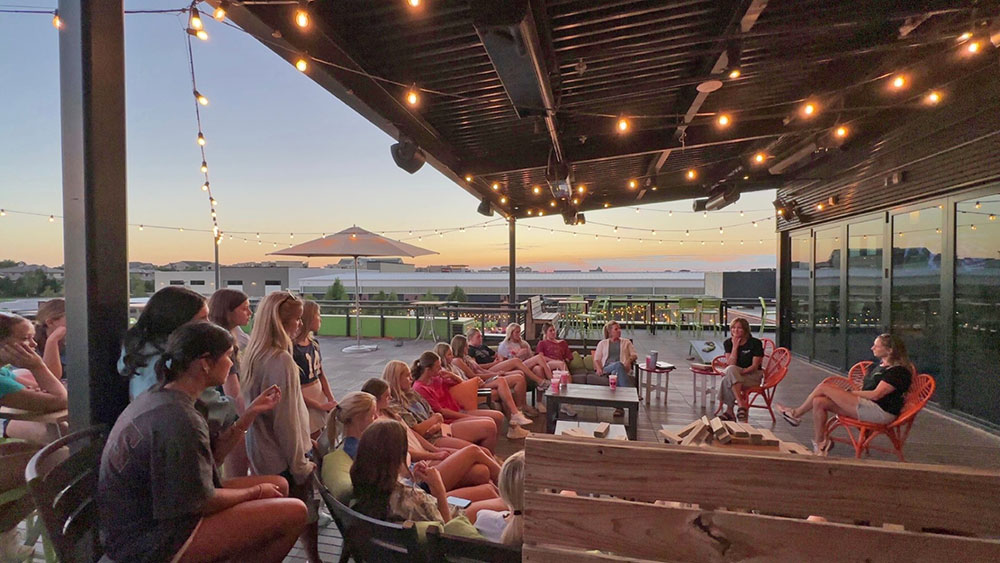 Once everyone settled in on the rooftop, it was time to talk about what Fight Club is really about and what these groups can mean for the girls at Olathe South. I had the chance to share a bit from my heart—about what I’ve seen in other Fight Club groups and why I’m so excited for this one. Having taught many of these girls, I know how strong, thoughtful, and capable they are. I told them I can’t wait to see how this experience helps them grow in confidence, connection, and leadership—both inside and outside of school.